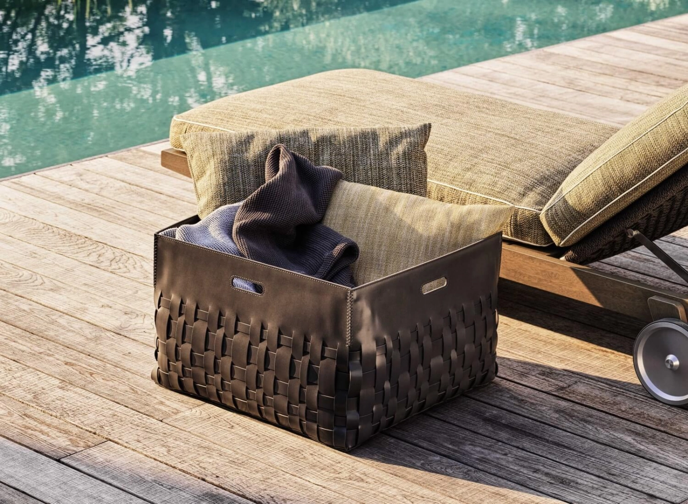 Cesta Outdoor is an all-around accessory that combines extreme practicality with sophisticated decorative functionality. Designed as the ideal complement to sofas and armchairs, Cesta Outdoor can be used as a magazine holder or storage bin in places like terraces and patios. Functional slot-openings cut into the upper part of Cesta Outdoor make it easy to move. The woven polyurethane rubber is entirely hand-woven. Cesta Outdoor comes in two sizes and in a palette of sophisticated colors that range from earth tones to bordeaux and olive green.