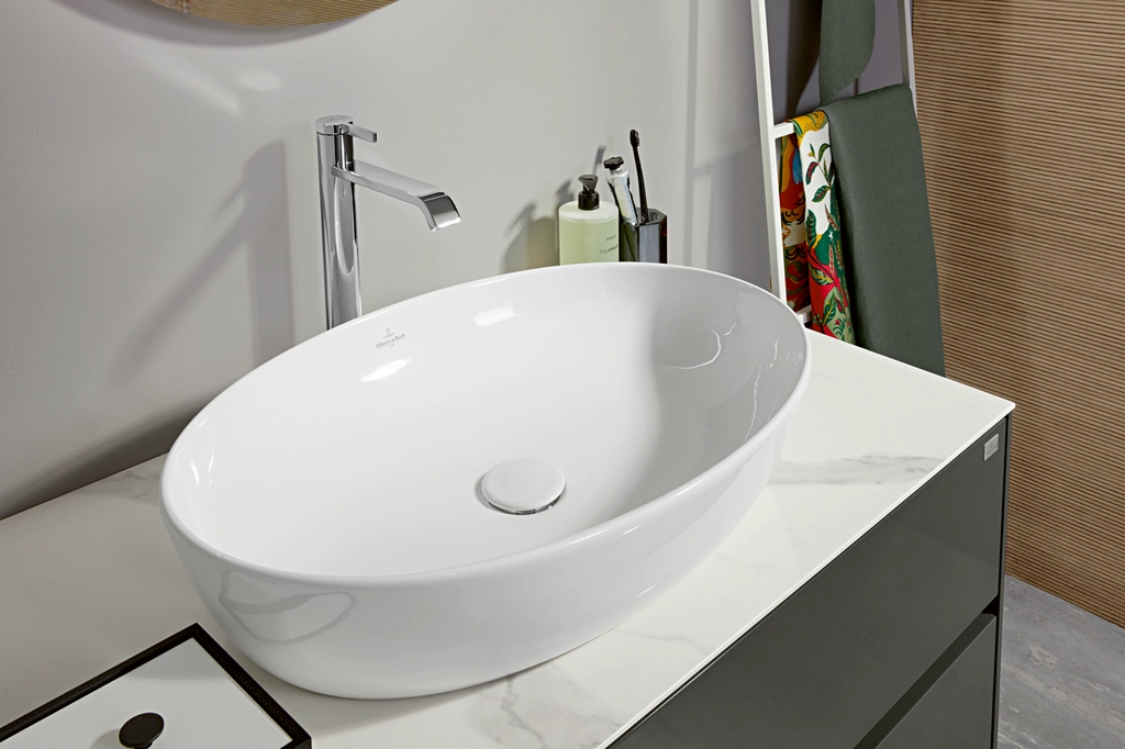 Four forms, nine colours, thousands of possibilities: Artis comes in a broad range of colours to cover all tastes, from bold statements to subtle highlights in the bathroom. Whether bold Bordeaux or delicate neutrals – the striking surface-mounted washbasins are always an eye-catcher.