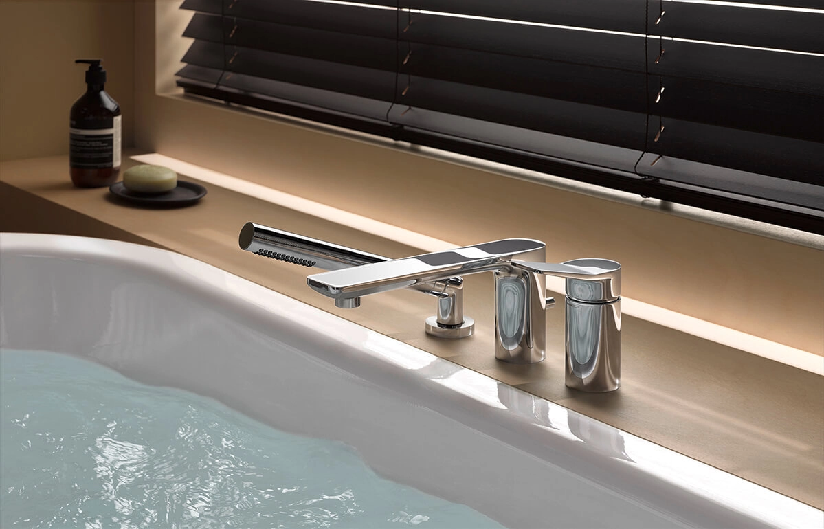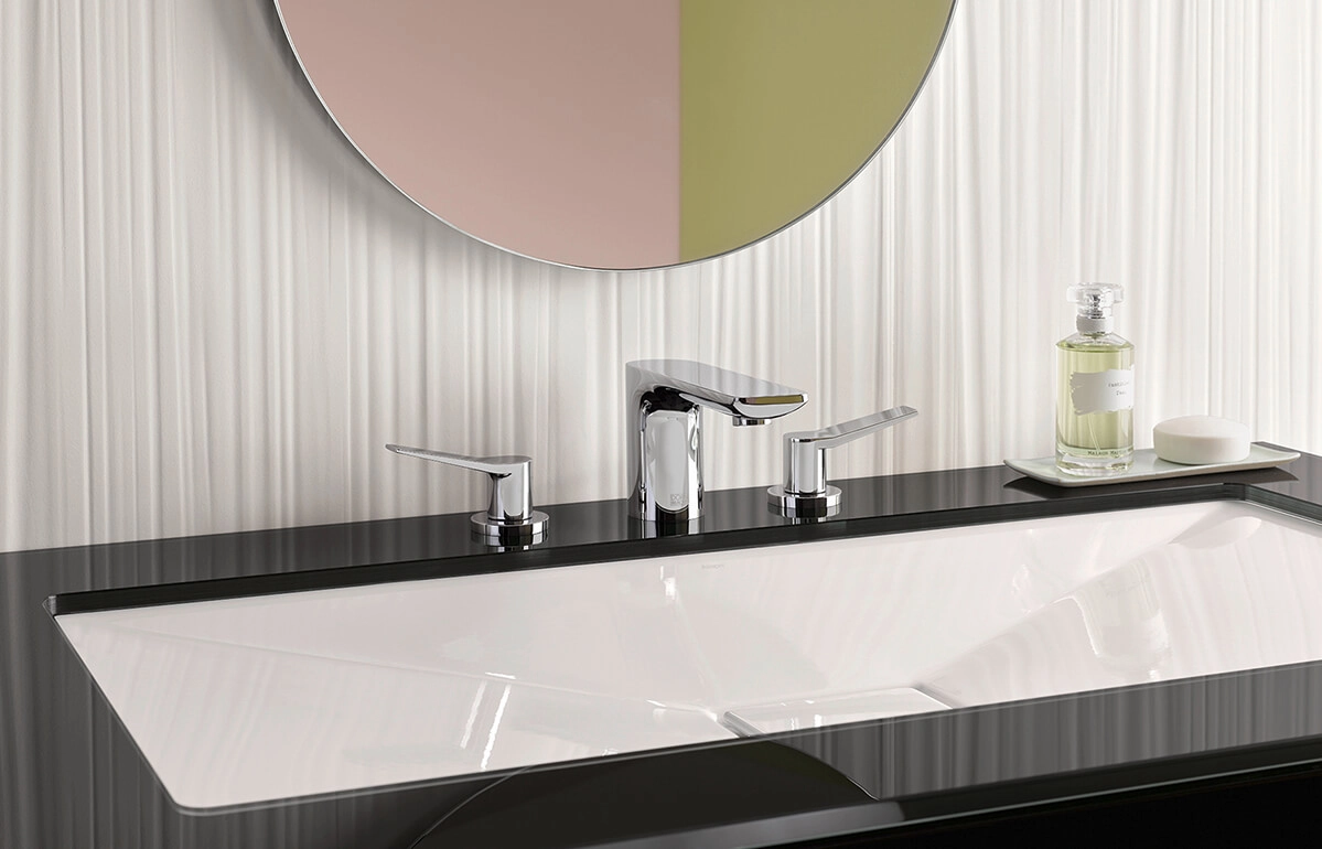 LISSÉ invites the touch.It combines basic, clear-cut, geometric shapes with relaxed, curving countours. Generous surfaces meet narrow edges. Skillfully designed yet modest, it sets the tone in any bathroom.One special hallmark of this fitting is the dynamic form of the lever, contrasting playfully with the minimal body and the flat spout to create a striking accent.Discover the fascinating product world of LISSÉ: progressive bathroom fitting designs for washstands, showers and tubs.LISSÉ makes an impression with a design language full of exciting contrasts: Basic, clear-cut, geometric forms and relaxed curving contours meet generous surfaces and narrow edges. The flat spout with rounded corners is especially characteristic of LISSÉ. A design that is as clean as it is ornamental.