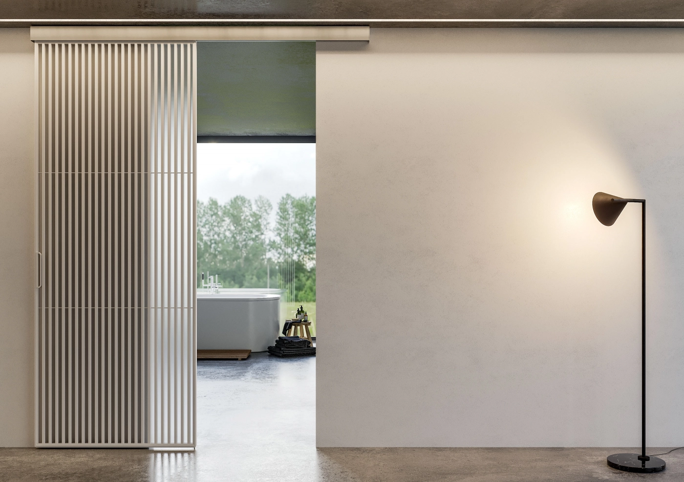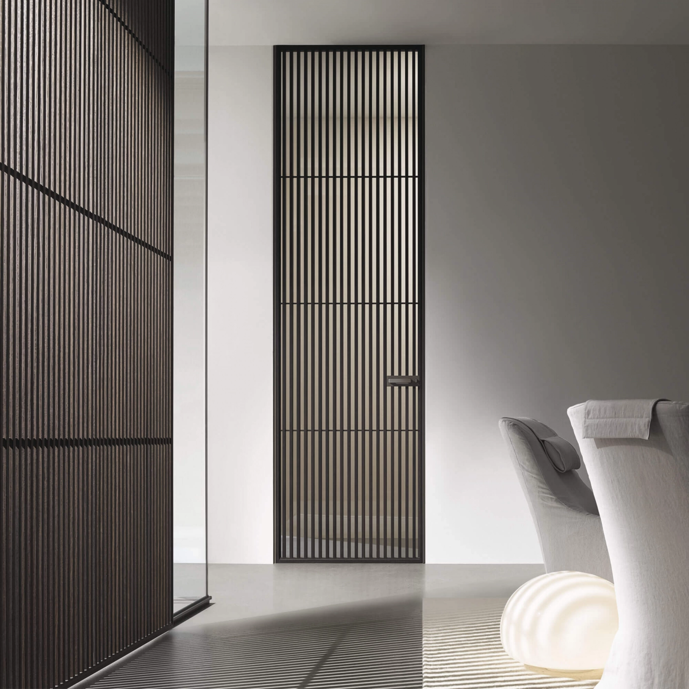 Sail result of a careful technological research and of an elaborate manual assembling work of the components, Sail becomes a real decorative item, combining high technical and functional performance with an original aesthetic and a strong expressive value. Endless combining solutions between Rimadesio glass finishes and the aluminium structural element, also available in walnut or heat-treated oak veneered version.
