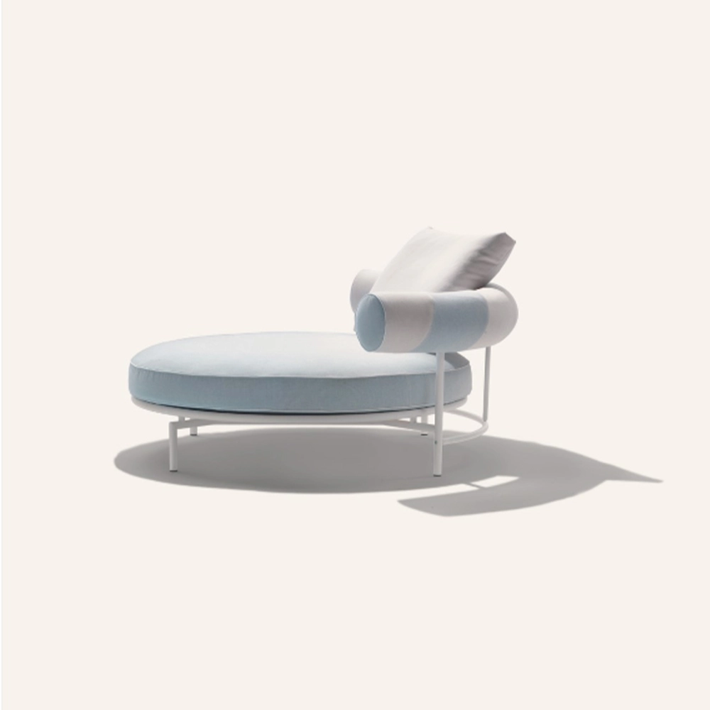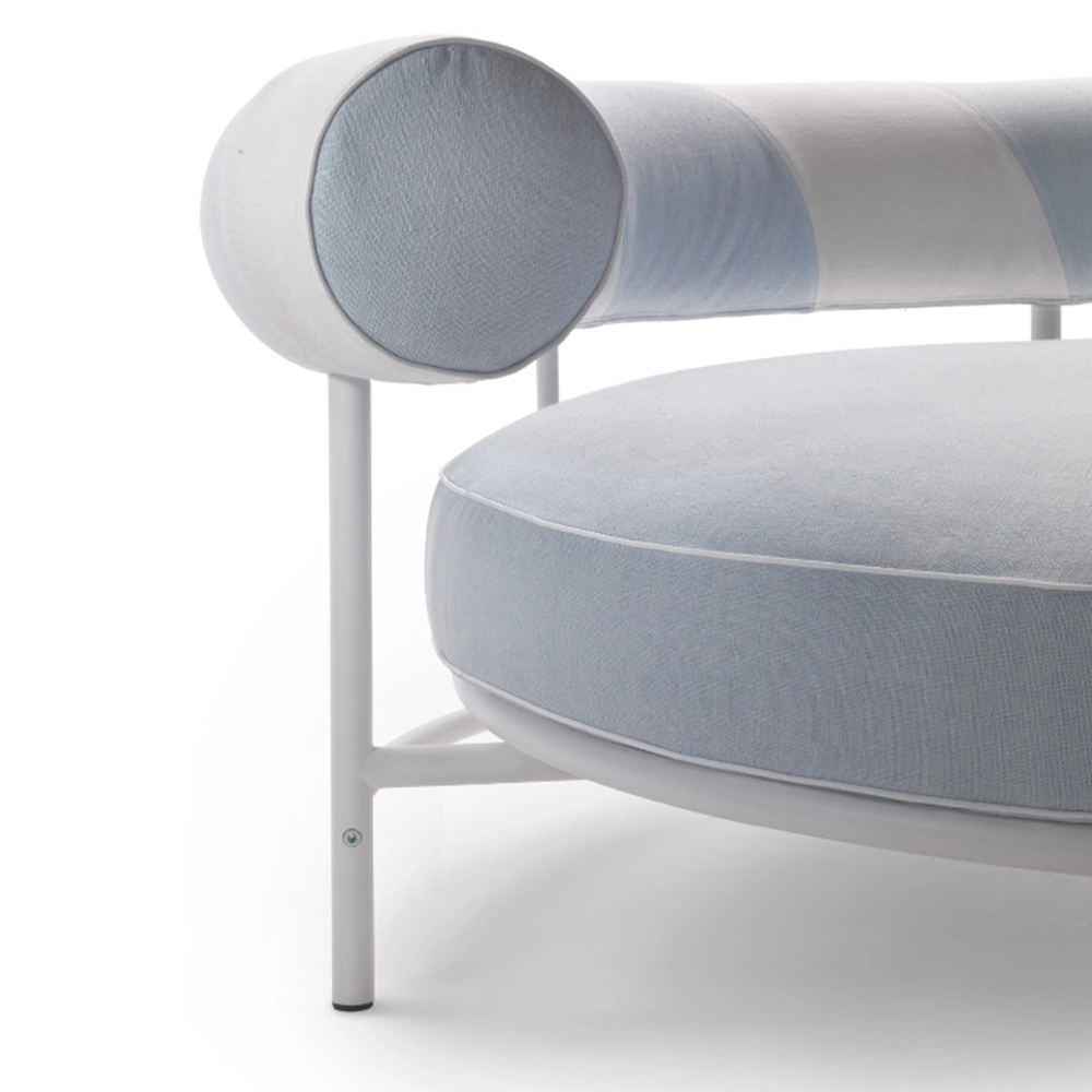 The Supermax Outdoor sofa expresses its personality through a unique design and enveloping contours. The structure of the Supermax Outdoor sofa is in tubular steel with epoxy powder-coat finish in an array of sophisticated colors, while the seat cushion has a singular “kidney-bean” shape complemented by an equally unique curved cylindrical backrest cushion. The Supermax Outdoor sofa is also available in a version with round seat, designed to accommodate one or two people in a partially reclined position.