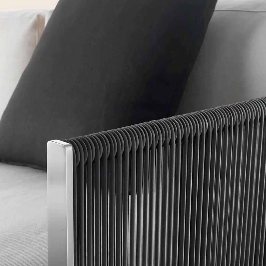 Woven materials, especially dear to Flexform, have inspired many products in the indoor collection, and weaving is now the motif featured in the Vulcano seating system. Concepts like compositional flexibility and a high degree of customization, coupled with a determination to find just the right materials to ensure optimum outdoor performance, are the core features of the Vulcano chaise longue design. The base is made of marine plywood, while the structure is in 316 austenitic stainless steel, a super alloy that ensures superior performance in outdoor settings, and is clad in elegant woven upholstery made of polypropylene fiber or polyurethane rubber, available in a sophisticated palette of colors. The chaise longue rests on a perimeter frame in 316 austenitic stainless steel and nylon pads. To ensure optimal outdoor performance, all the upholstered cushions are encased in a special lining material made of breathable water-repellent fabric, while the vast collection of outdoor upholstery fabrics guarantees excellent resistance not only to the effects of weather and the sun but also to chlorine and salt water. Use of their respective covers to keep the product in top condition and maintain its original appearance as long as possible is highly recommended.
