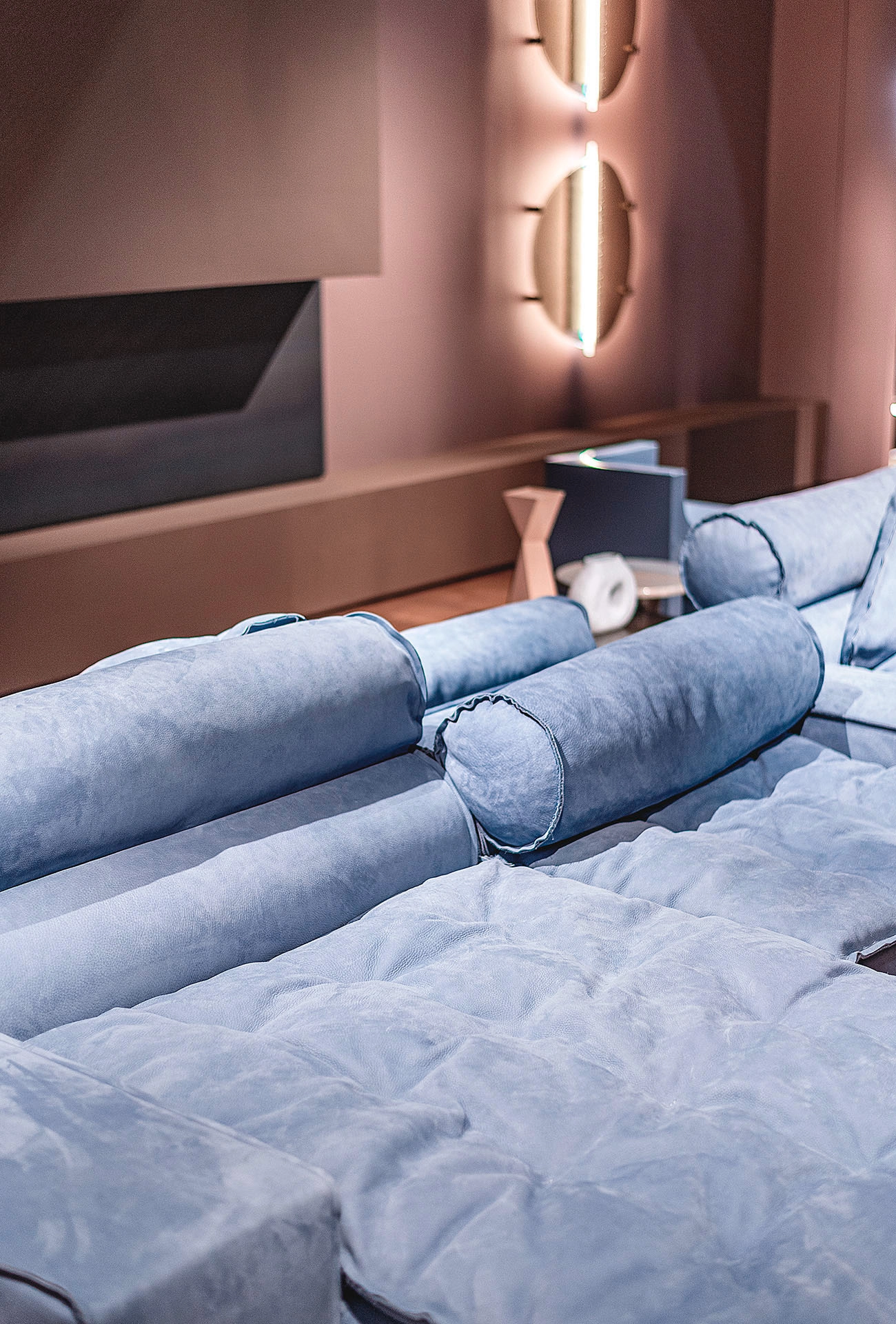 The Miami Soft modular sofa adds a touch of extra comfort to the freedom of Paola Navone's outsize design, embodying Baxter's masterful ability to make leather extra-soft. The informal, versatile and welcoming character of this large modular sofa focuses all of its attention on the comfort of its guests. Placed in the centre of the living room, it invites you to take a seat on your favourite side with a simple movement of the roller backrests, facilitating complete relaxation or conversation depending on the situation.