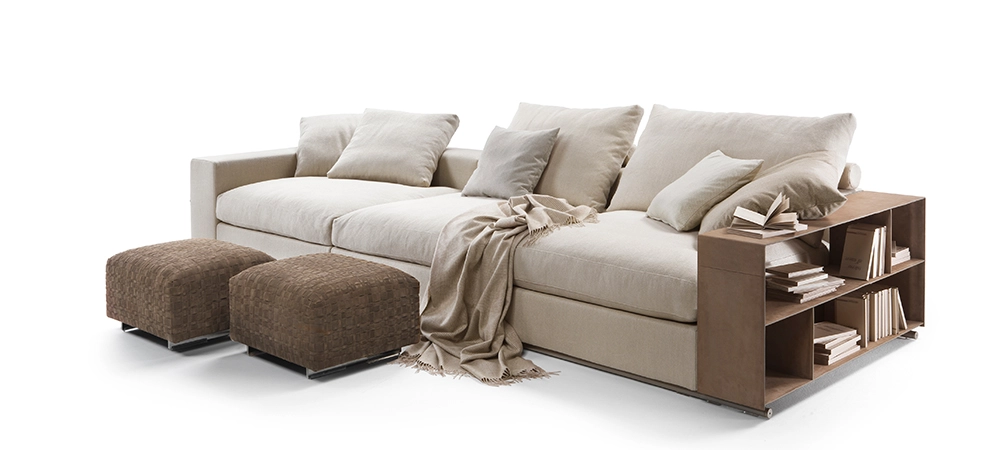Aware that changes in lifestyle spark new behaviors and needs, Groundpiece introduced a new dimension to the way the sofa is used, investing it with new functions. On today’s sofas, people rest, watch TV, read, and often work and even have dinner.