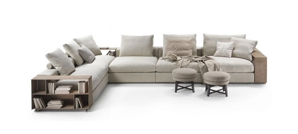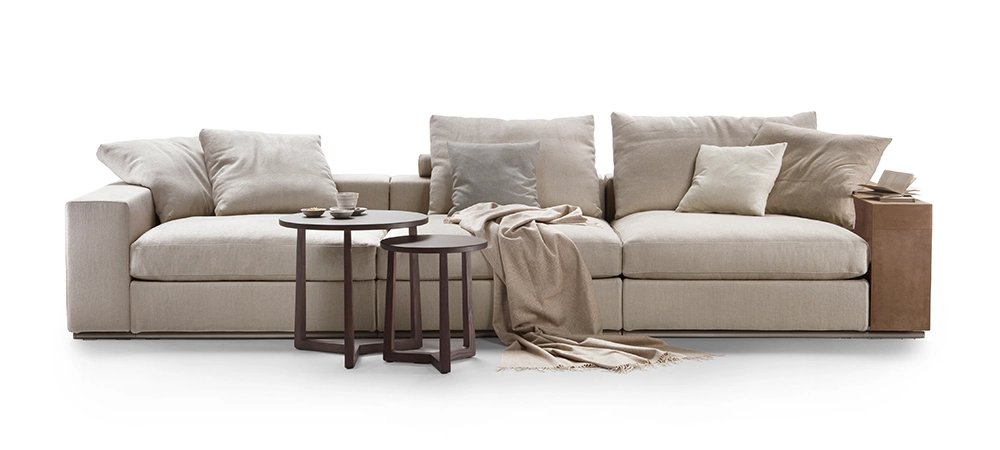 An undeniable best-seller from the Flexform collection, Groundpiece has transformed the very concept of the sofa, introducing several innovations. First of all, it is a deconstructed line with new proportions – the Groundpiece sofa is low and deep, designed as a more relaxed and casual approach to seating. Groundpiece embodies the quintessence of Flexform comfort and is exceptionally inviting, thanks to the amply-sized goose-down cushions. Groundpiece also allows for the utmost personalization of the padded elements that can be crafted in goose down, in the premium version, or in Dacron.