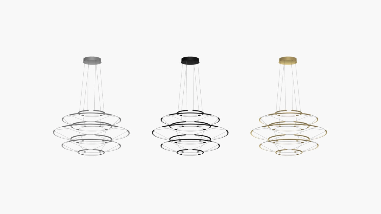 Instinct and constant design diligence in a collection that is the outcome of a sophisticated lighting engineering. A clear lines chandelier combined with an extremely slim aluminium structure for a soft echo of strong and diffused light. Each profile and connector is linked through a miniaturised connection for a unique result of suspended lightness.