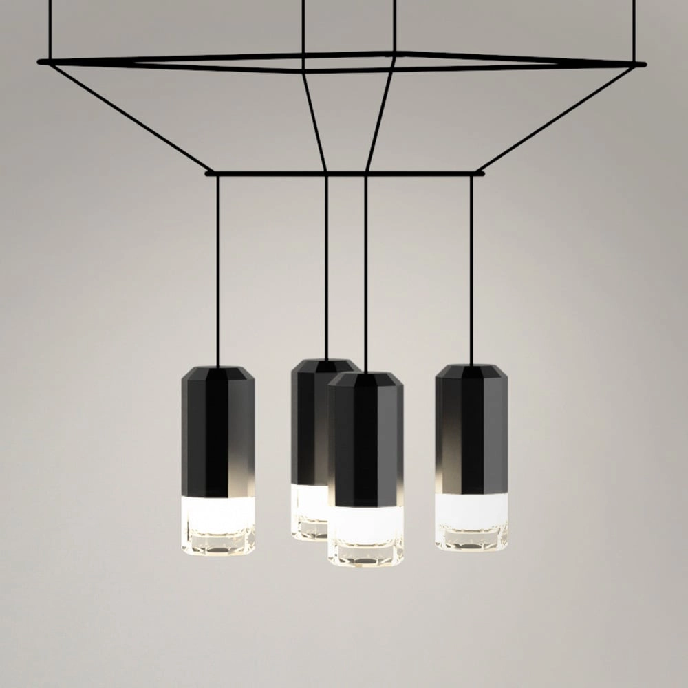 The Wireflow Volumetric collection was designed by Arik Levy. The supporting structure for the Wireflow 3D is constructed by using black electrical cable and a 3.7 Watt LED light source; the lamp is characterized by these very materials which define the collection.