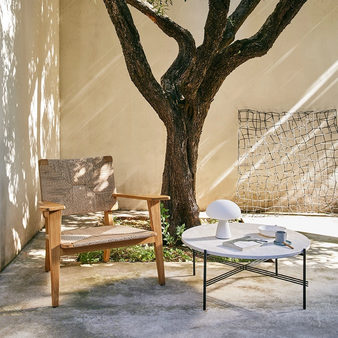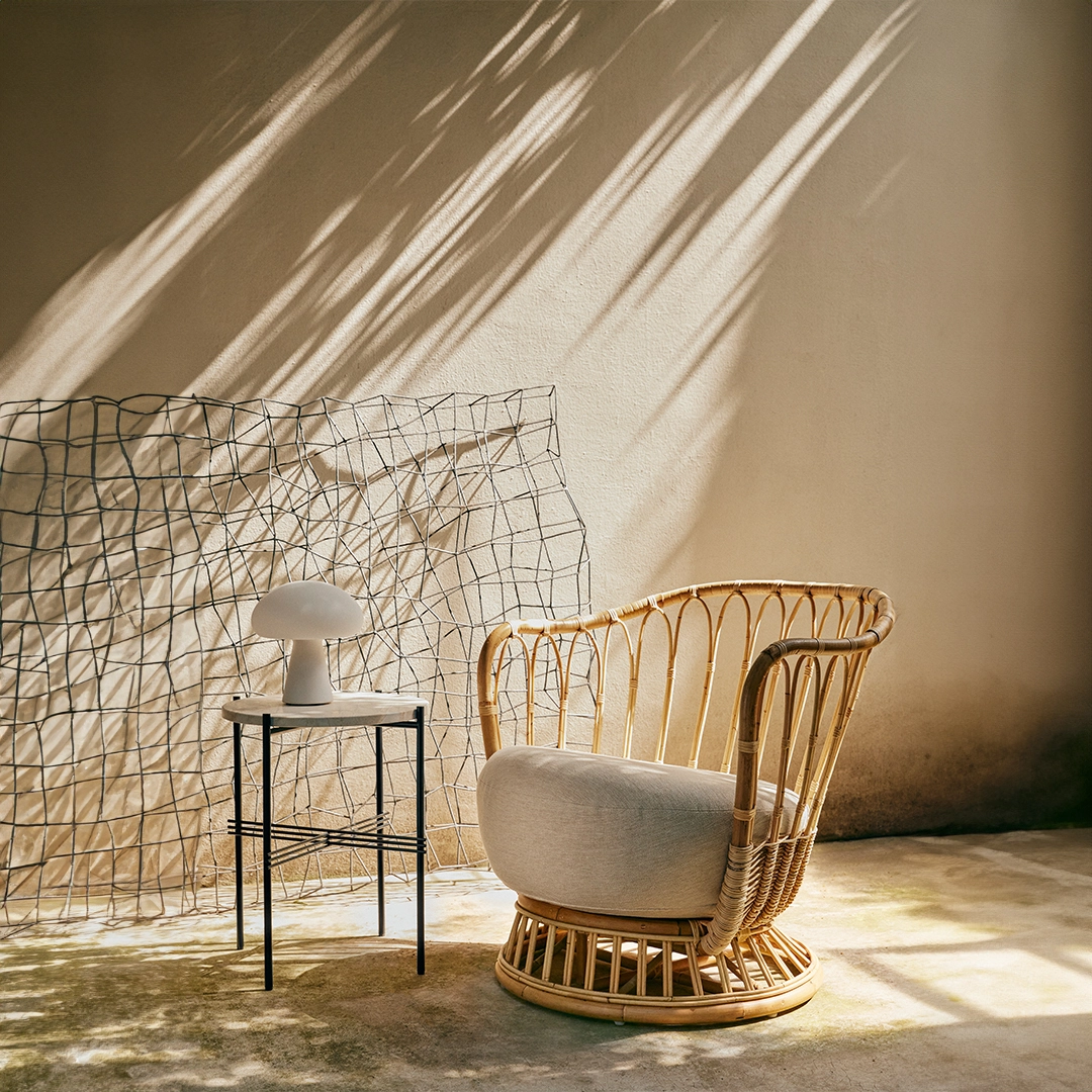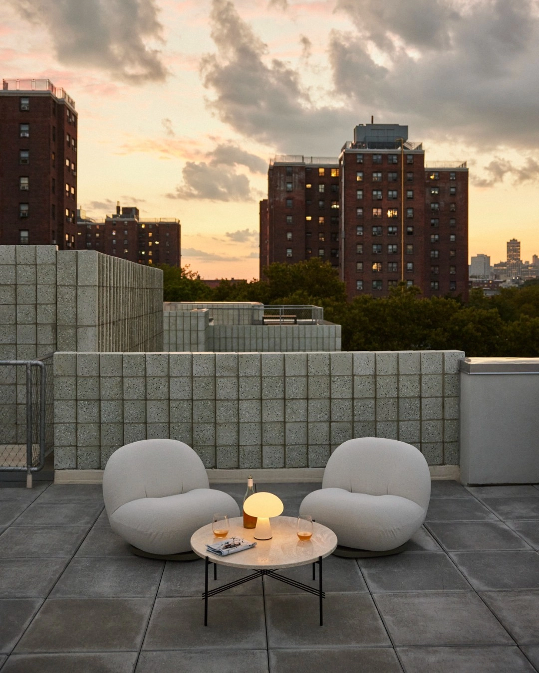 Let the Obello Lamp light up your interior or pick it up and carry it outside to create the sense of an ‘outdoor room.’ The shade is made from mouth-blown glass – a challenge given its shape – as a nod to old petroleum lanterns, and the portable size makes it easy to carry. This materiality and craftsmanship add value and tactility, making each lamp unique. The Obello Lamp is an iconic space-age design that will make a strong statement, either as a playful centerpiece or a point of curiosity within any outdoor space.