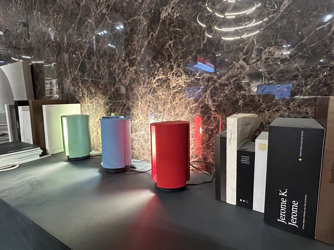 An avant-garde icon of the 1950s, Pivotante à Poser was conceived by Charlotte Perriand as an architectural element. The light emission interacts with the material texture, volumes, dimensions and graphic signs created by the two rotating diffusers, which allow both closing and opening of the light beam for