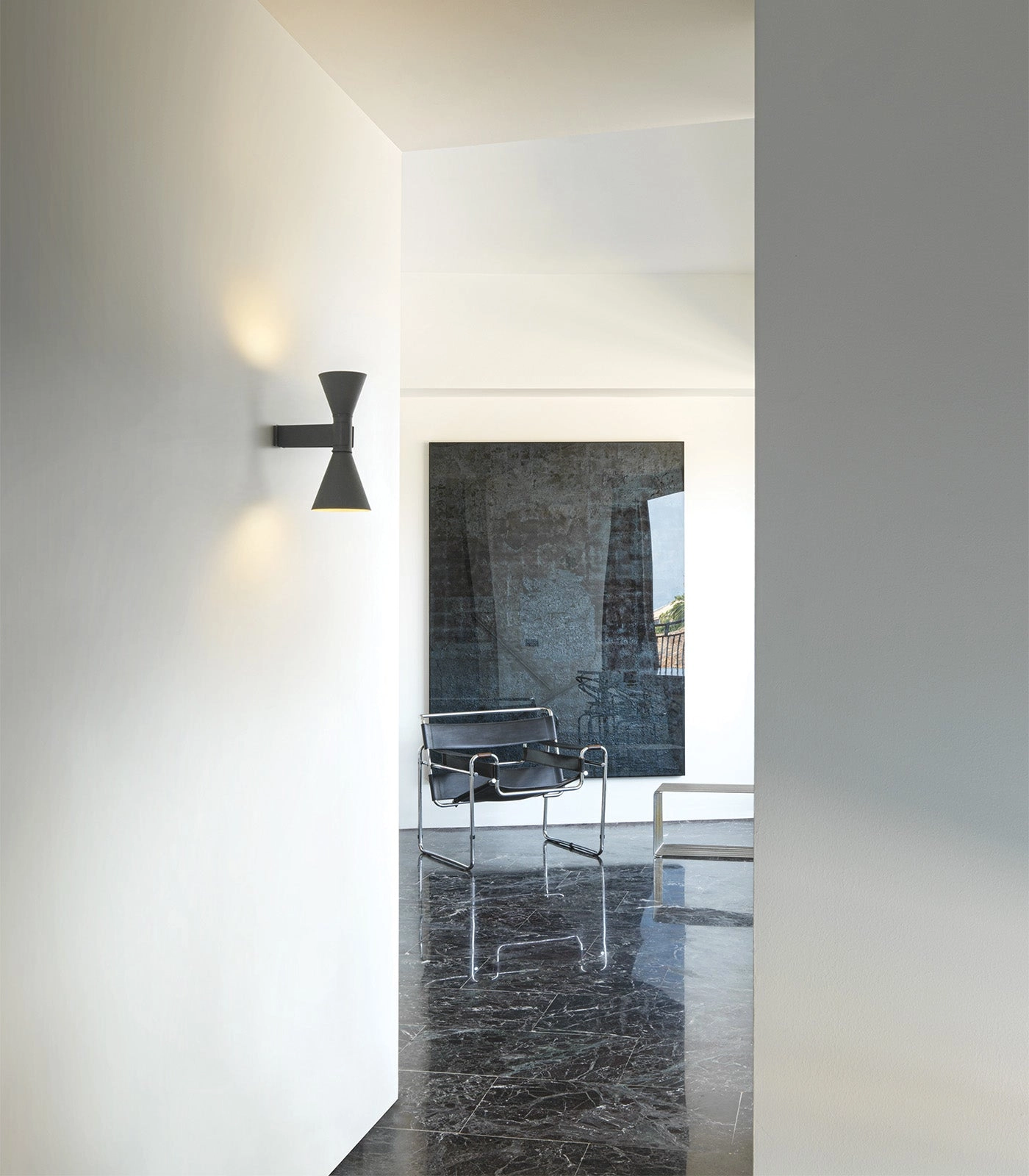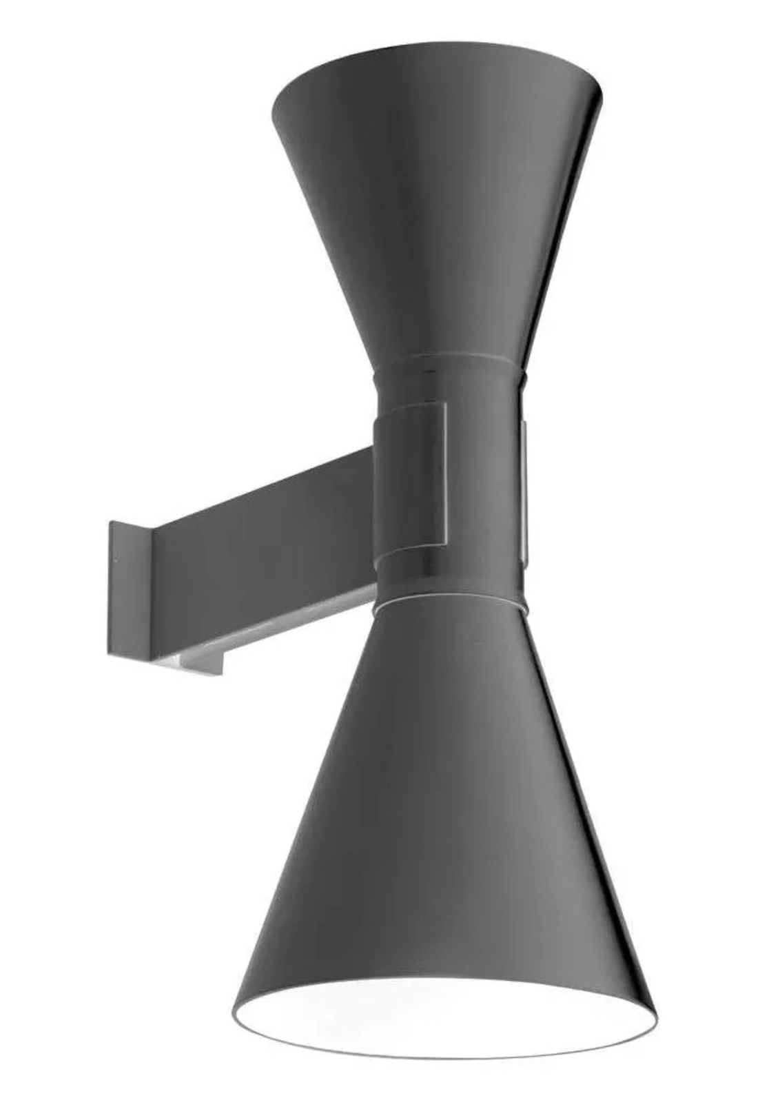 Mini version of the iconic Applique de Marseille Nemo, designed by Le Corbusier for his Parisian flat in Rue Nungesser et Coli. A wall lamp for direct and diffused light: two cone-shaped lampshades direct the light up and down, providing homogenous and sharp light beams. Available in matte grey, whitewash or black finish with an internal white diffuser.
