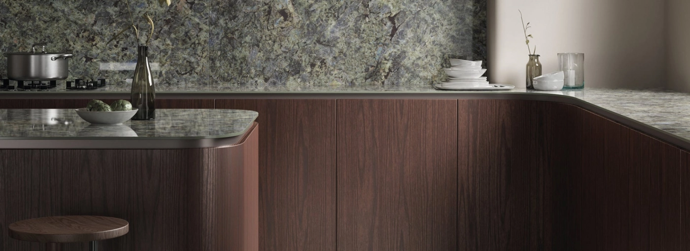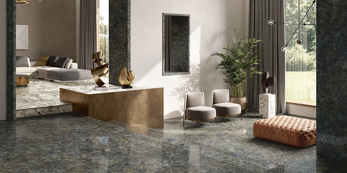Research expertise and state-of-the-art production technology are combined in a single surface. Patterns of color, opalescent inserts, and the special, luminous glint are proof that beauty can also be found in complexity.