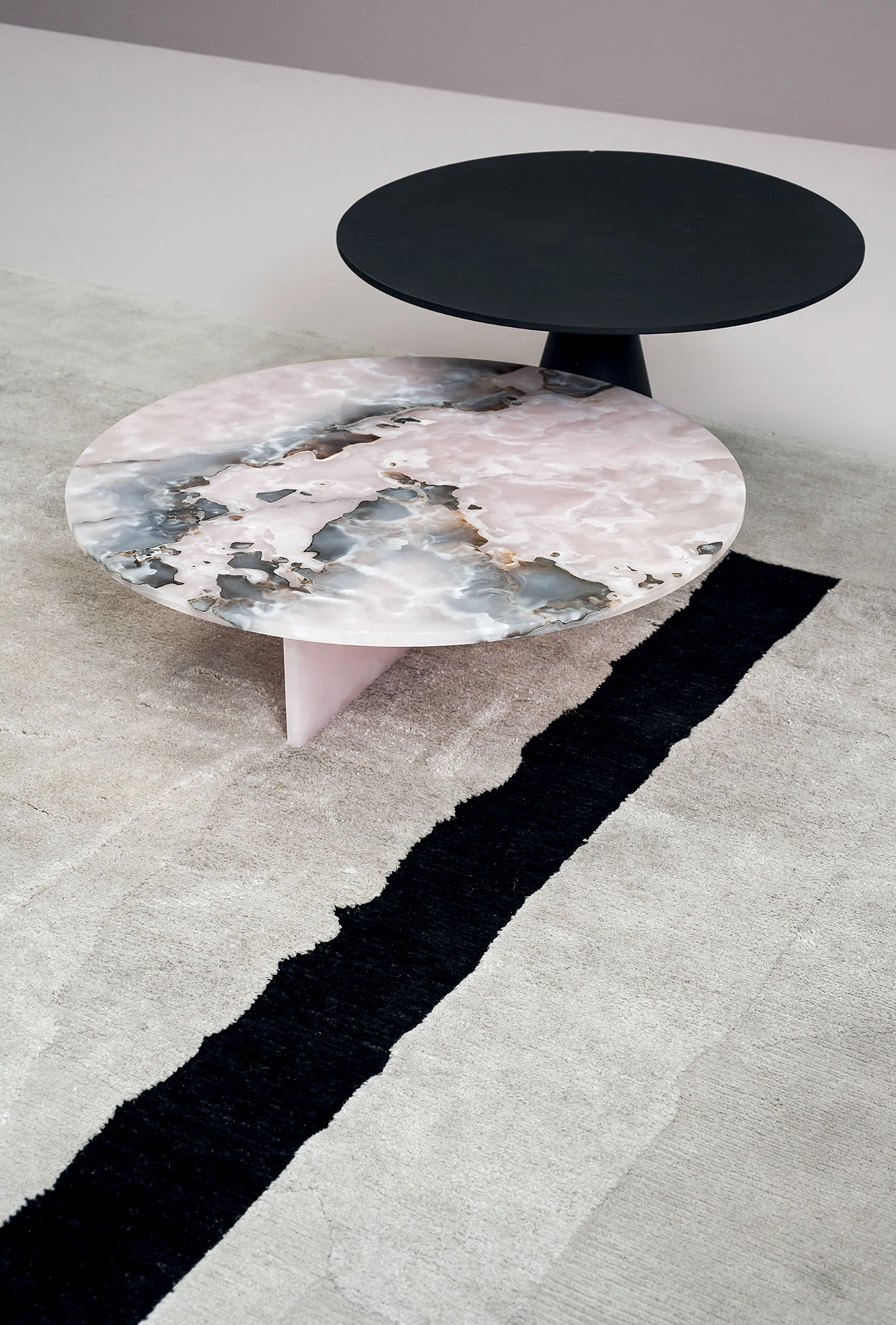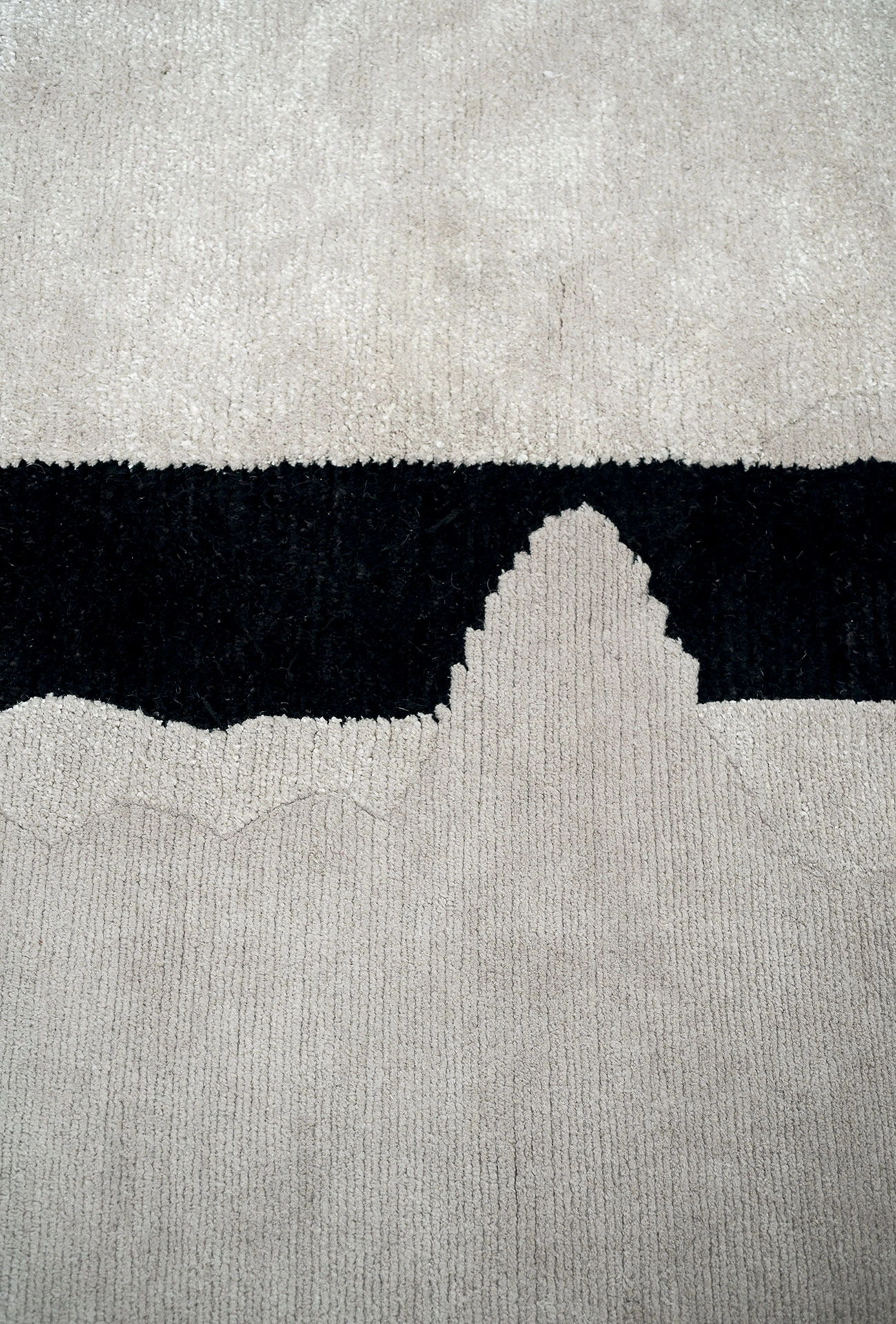 This rug is completely hand-knotted in Kathmandu, Nepal. Weft and warp in cotton and hand-spun and hand-carded Tibetan wool (800gr/mq cotton, 60% wool and 30% Indian “sari silk”). The fleece is knotted with the “cut pile” technique and refined on different levels.
