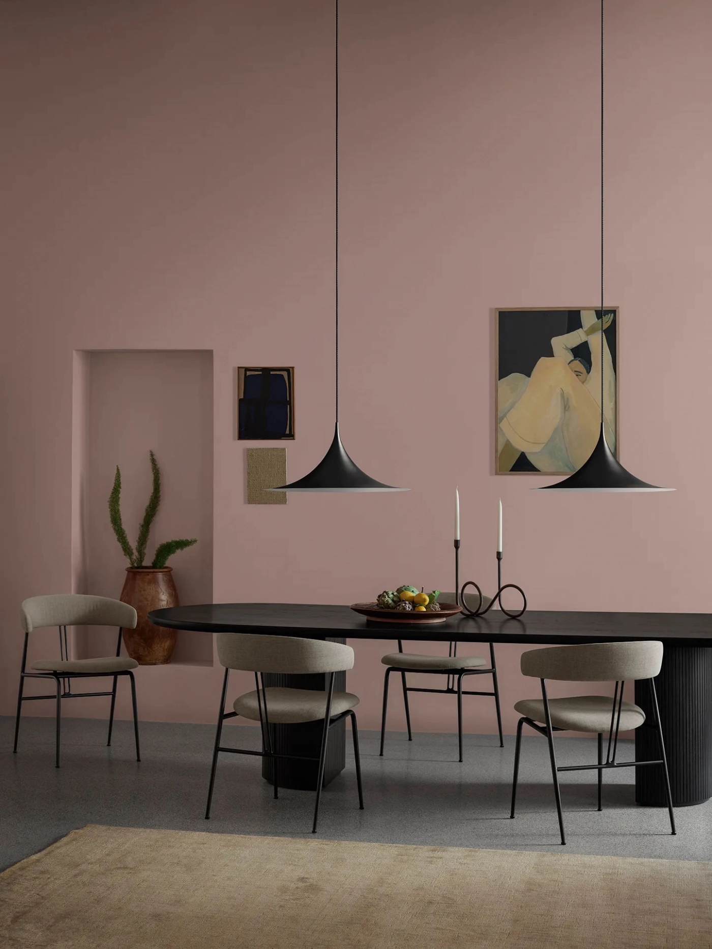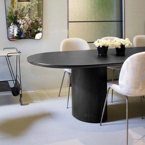 Moon is a beautiful modern dining table from luxury Danish design house, Gubi. Its generous proportions are complemented by an array of organic textures, inviting tactility and glamour into the dining room. The interplay between the beautiful solid oak table top and the smooth half-moon shaped bases, at once structure and ornament, creates a simple yet strong identity for the design. The result is an elegant table with clear references to traditional Danish carpentry, where the tribute of marriage between design and craftsmanship is in focus.