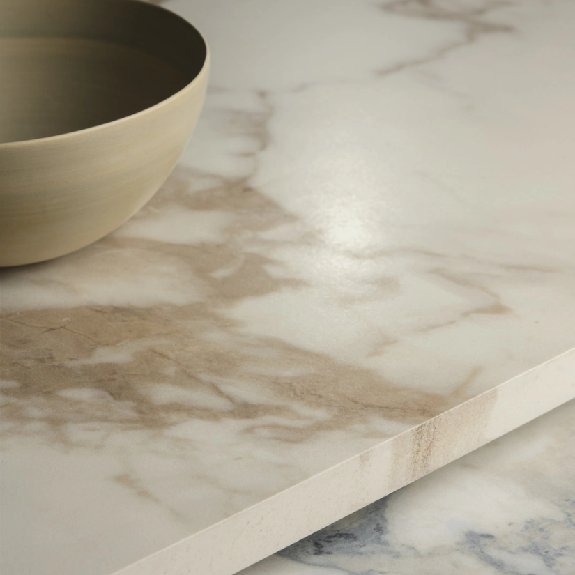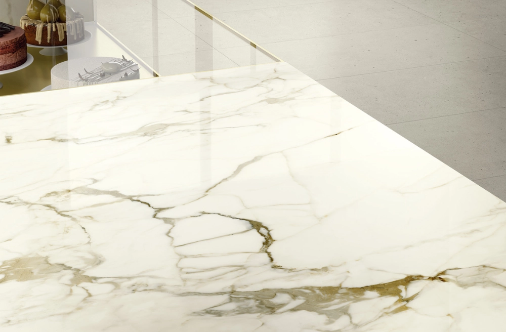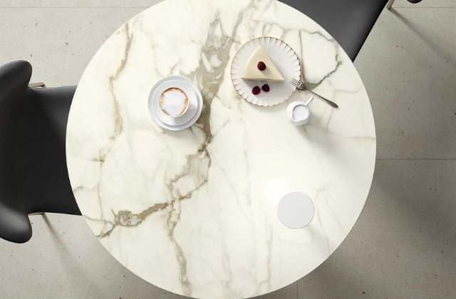 Nothing is more gratifying to the eye and palate than lovely pastries, which have reached such levels of aesthetic perfection they can now be considered an artform. Displayed on soft, silky to the touch, marble-effect surfaces, only Calacatta Macchia Vecchia, embellished with bold inserts of Rovere Baio, can make them seem even more inviting, ready to entice even the most disciplined. The displays are simple, essential yet dynamic, highlighting the inviting sweet treats that innocently relieve stress or celebrate any achievement.
