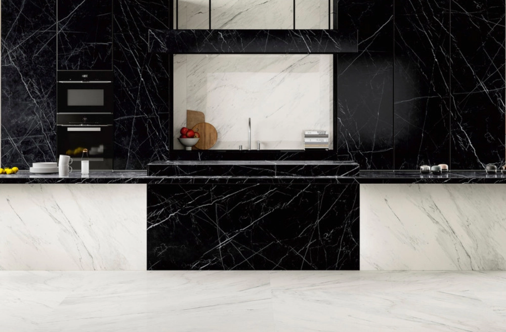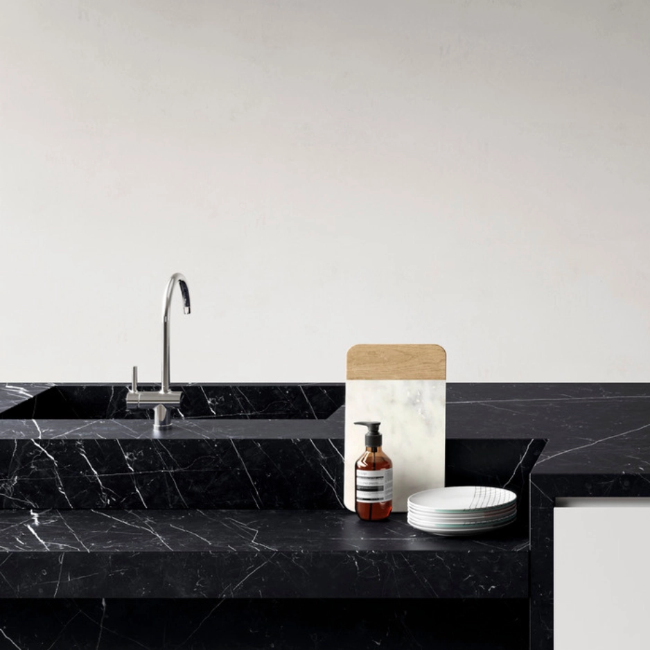 Refined, intense Dark Marquina is a new SapienStone colour for dressing up kitchen countertops. With fine white veins on a black background, this colour reproduces the nuances of one of Spain’s most popular marbles: Black Marquina