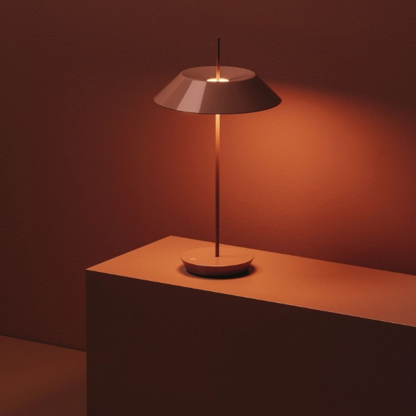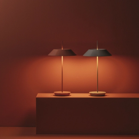 Portable version powered by a rechargeable battery. This can be moved exactly where needed, indoors or out. A push button in the base turns it on and off and controls dimming. Design by Diego Fortunato.