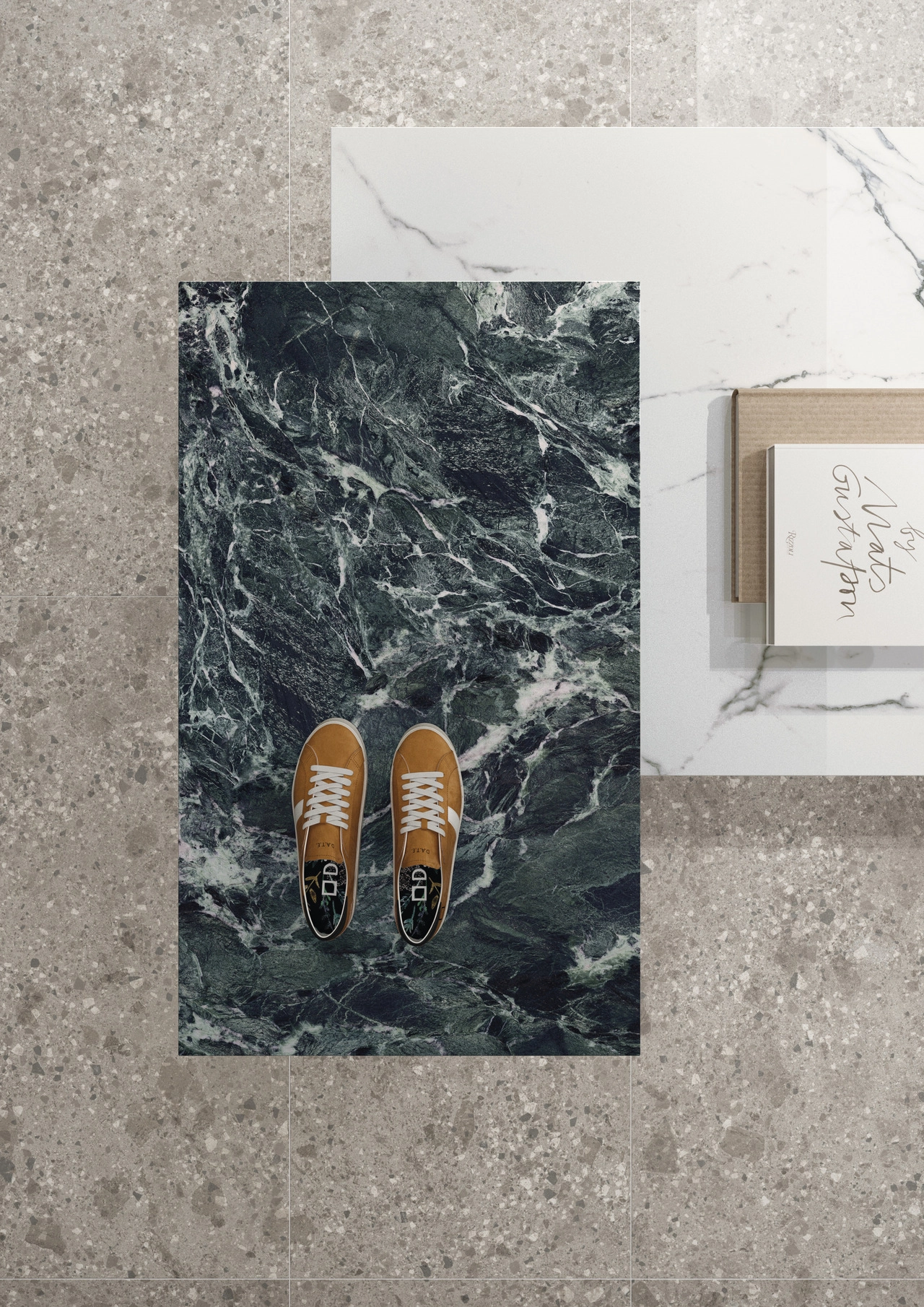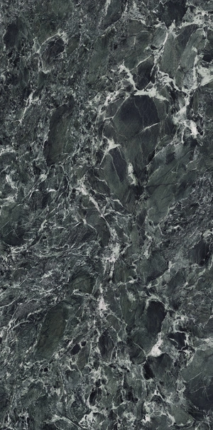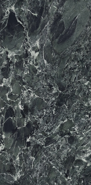 VERDE ST. DENIS by Ariostea takes its inspiration form a classic Italian marble from the Aosta Valley. With an intense, dark green background, it features whitish veinings that make it a timeless marble, a perfectly sophisticated option for enhancing both public and private settings.