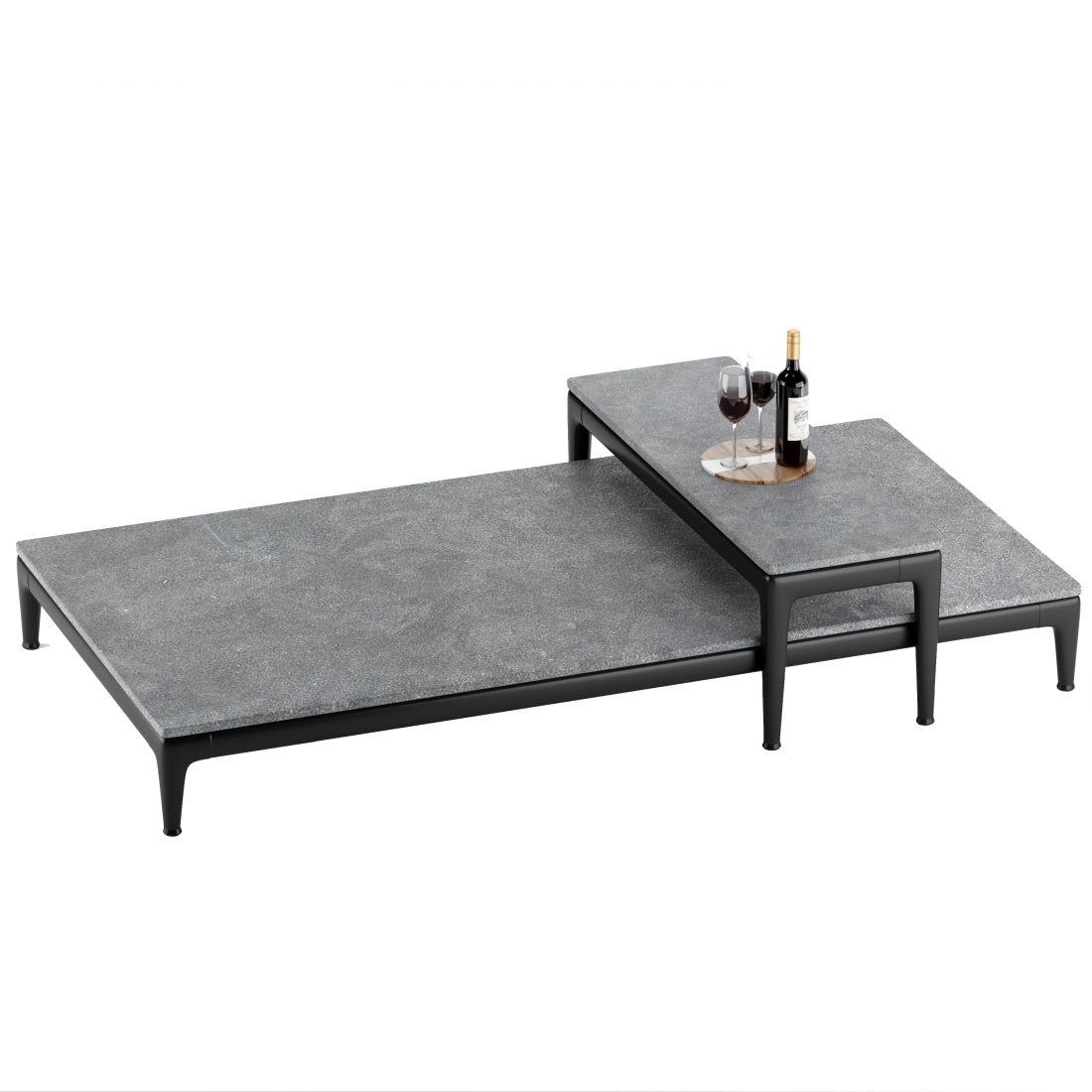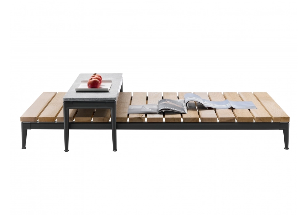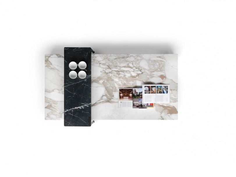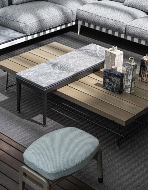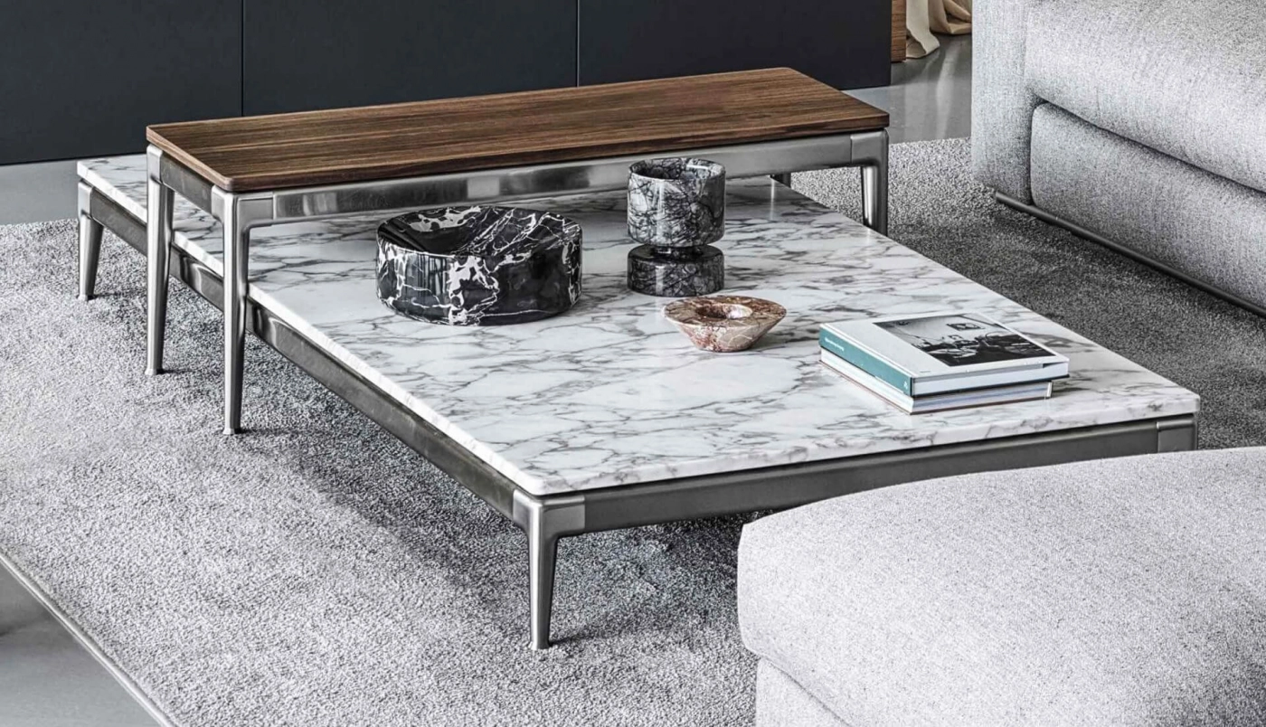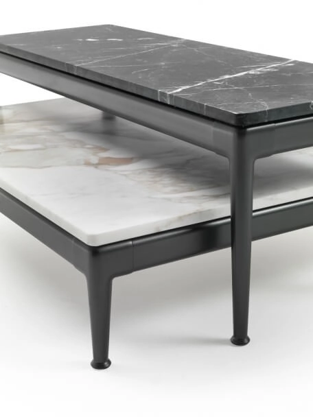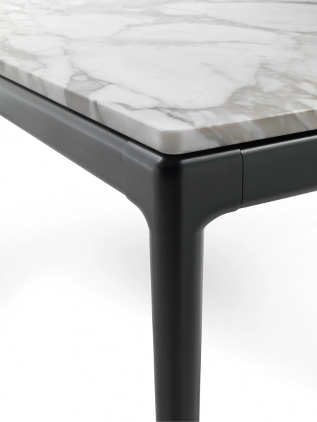 The elegantly tapered legs of the Pico dining table lend it fluid dynamism and a clear sense of visual lightness. Made of cast aluminum, the legs come in a number of stylish finishes, while the no-sharp-edges top can be made from various types of marble; or made of wood veneered with Canaletto walnut or ash in a variety of finishes. The Pico dining table and coffee tables come in an array of sizes and offer great versatility and a high degree of personalization, thanks to the countless combinations of structure and top finishes that can be achieved.