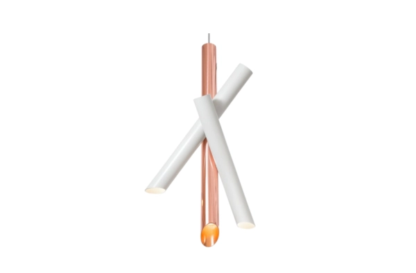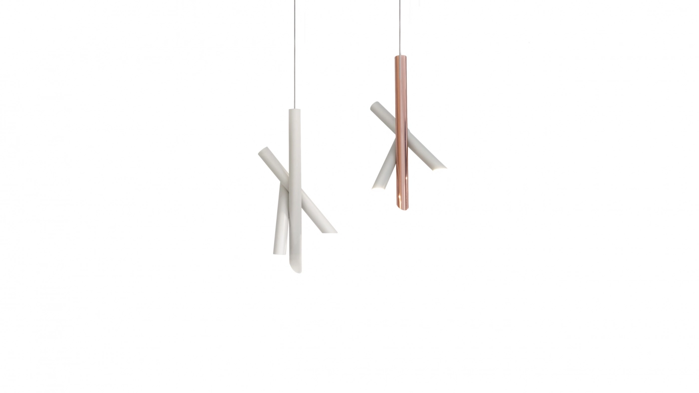 Family of suspension, wall and ceiling lamps, made with tubular elements for objects with a strong and essential design that is expressed through pure forms.