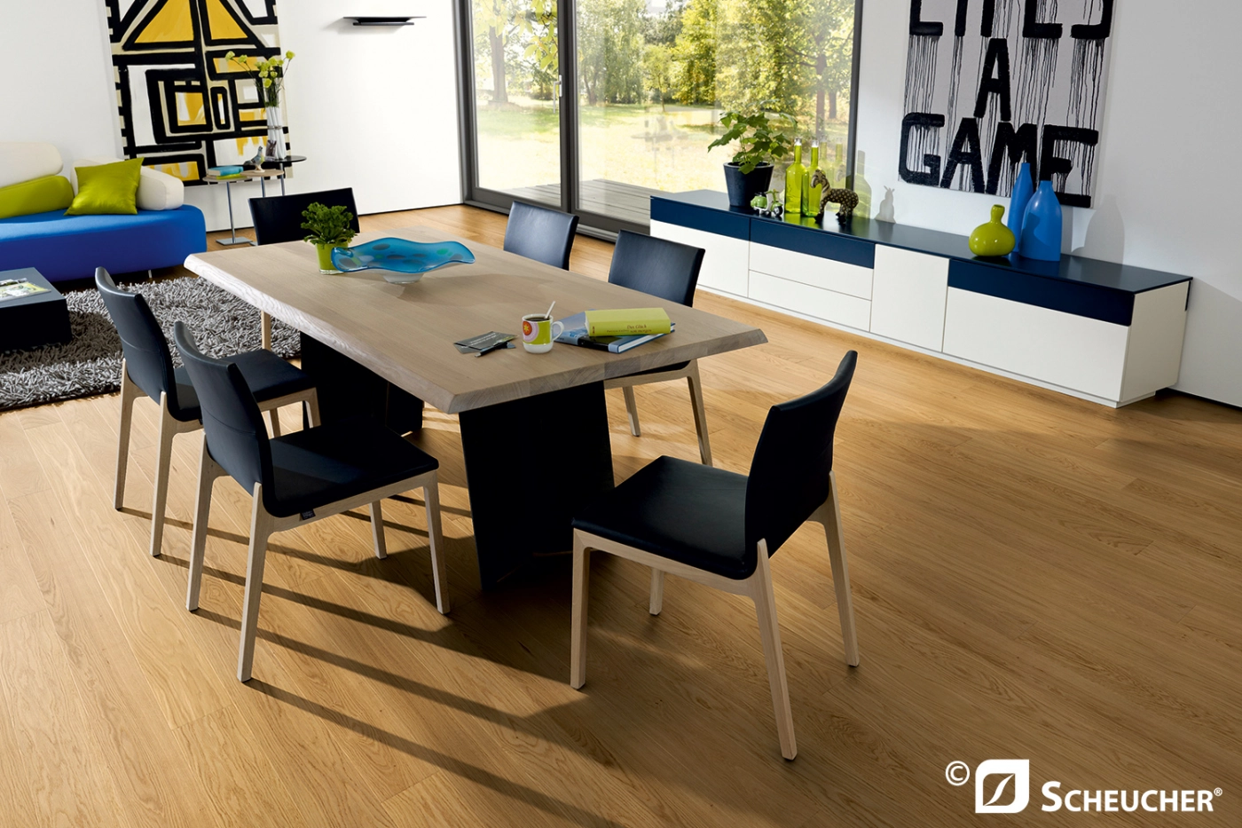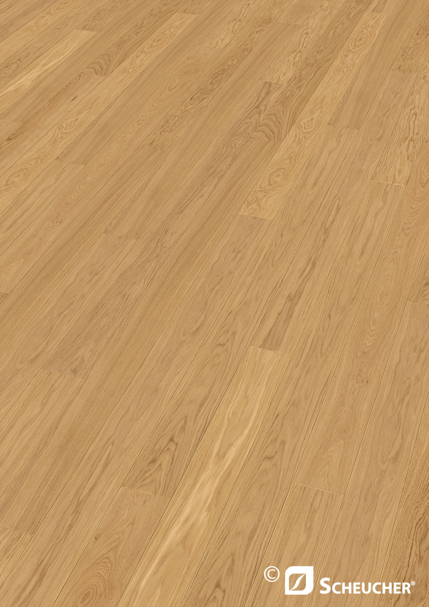 The special construction of this range has proven its worth over decades and let you profit from an enormous stability, resilience as well as a high warp-resistance. This way WOODflor NOVOLOC® 5G parquet can also be installed floating on an appropriate underlay as well as glued down on a screed or wooden composite subfloor. With the reliable NOVOLOC® 5G system, planks are simply locked together, aligning themselves automatically click by click. This easy handling makes the installation of the parquet floor a snap. Planks with tongue and groove profile are installed classically, applying a PVAc-white glue. An approx. 3.6 mm wear layer from solid wood guarantees the possibility of multiple renovation.
